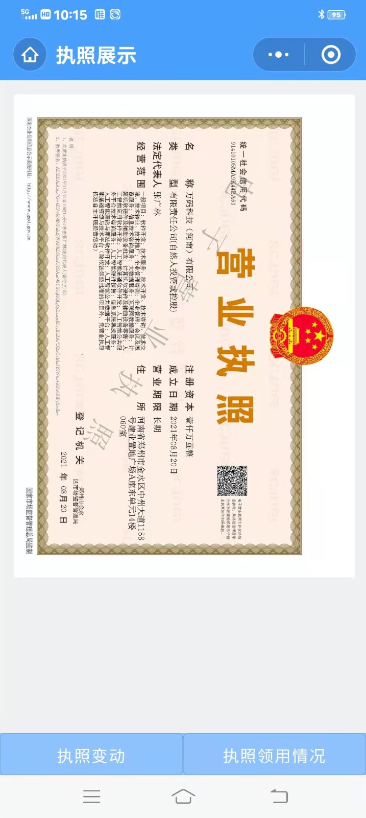 地区:河南省郑州市公司注册资金:服务范围:证书类型: 注册型SP证书编号: CNRT-ZCSP-20210268证书二维码: